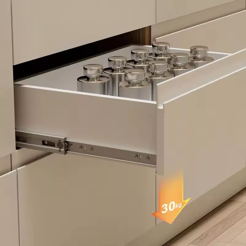 Het eerste om te overwegen is de materiële selectie. Er zijn twee veel voorkomende soorten lunners: kogellager en poelie. Kogellagertypen glijden soepeler, terwijl poelietypen betaalbaarder zijn. Keukens en badkamers zijn vaak vochtige omgevingen en schuifrails van slechte kwaliteit zijn vatbaar voor roest. Dit verhoogt de wrijving en veroorzaakt ernstige blokkade bij het uittrekken van laden of kastdeuren. Na verloop van tijd kan dit schade veroorzaken en de levensduur van het meubilair aanzienlijk verminderen. Daarom vereisen zachte dia's van de dichte lade een bepaalde corrosieweerstand om zich aan te passen aan dergelijke vochtige omgevingen. Aluminiumlegering, gegalvaniseerd staal of roestvrij staal worden meestal gebruikt. HY bronnen al zijn materialen van gerenommeerde binnenlandse fabrikanten en zorgt voor stabiele kwaliteit en prestaties.